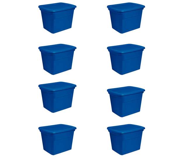 Sterilite 18 Gallon Plastic Stackable Storage Tote Container Box Blue 8 Pack from www.vm-images.net Save money online with gallon tote deals, sales, and discounts april 2021. The simple squared off design offers a space efficient shape. This popular size tote is ideal for a variety of basic household needs, such as sorting and storing clothing, toys, linens, craft supplies, seasonal decorations and more! Totes are really good for home storage or even garage storage and more. Festive black and purple colors make it easy to find your halloween decorations. Sterilite 16786a06 storage tote, 18 gallon, cement lid and base. Sterilite 4 drawer wide weave tower espresso. Uline offers over 30,000 boxes, plastic poly bags, mailing tubes, warehouse supplies and bubble wrap for your storage.